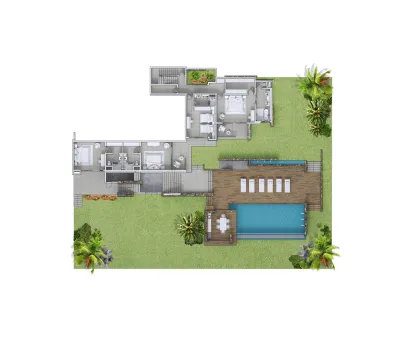 Au nombre de huit, les villas de prestige Cardinal possèdent la particularité d’offrir une vue exceptionnelle sur le lagon depuis leur vaste salon et leur belle suite parentale, grâce à une conception sur plusieurs niveaux. Leurs pièces à vivre se composent d’une grande cuisine avec annexes (buanderie, arrière-cuisine et espace dédié au personnel) et d’un agréable salon-salle à manger ouverts sur une spacieuse varangue où profiter de la douceur de vivre mauricienne chaque jour de l’année. Vous trouverez également sur ce niveau un espace bureau ou télévision,  qui peut être aménagé en chambre avec salle de bains.