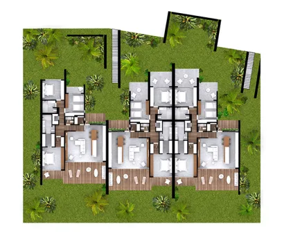 Their contemporary architecture blends sleek design with Mauritian authenticity, striking the perfect balance between modern comfort and tropical nature. Spacious terraces and lush private gardens extend the living areas outdoors, offering a breathtaking view of the Indian Ocean.