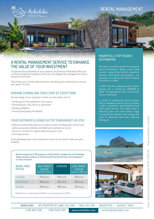 To take full advantage of the growing demand for seasonal accommodation in Mauritius, many investors opt for rental management of their villas or apartments.