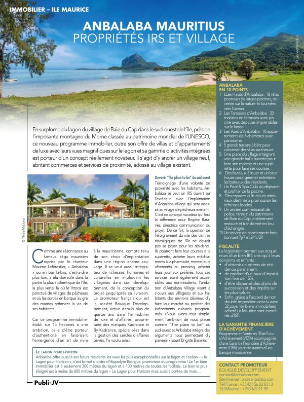 Car ce programme immobilier établi sur 15 hectares a une ambition, celle d’être porteur d’authenticité en favorisant l’émergence d’un art de vivre à la mauricienne, compte tenu de son choix d’implantation dans une région encore sauvage. Il se veut aussi, intégrateur de richesses, humaines et culturelles en impliquant les villageois dans son développement, de la conception du projet jusqu’après sa livraison. Le promoteur français qui est la société Bouigue Développement, active depuis plus de quinze ans dans l’immobilier de luxe et d’affaires, propriétaire des marques Kadrance et By Kadrance, spécialisées dans la gestion des cercles d’affaires privés, l’a voulu ainsi.