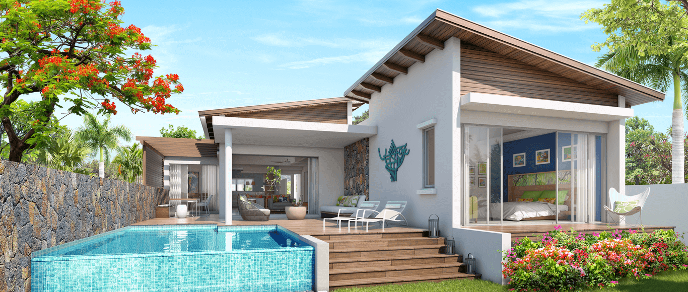 L’architecte a créé différents modèles de maisons, afin de composer un paysage bâti élégant et parfaitement adapté à la topographie du site, offrant par endroits des vues sur les teintes azurées du lagon et adapté aux trajectoires des alizés. Ces modèles portent des noms aux parfums d’agrumes : La phase 1 correspond au modèle Pomelo.