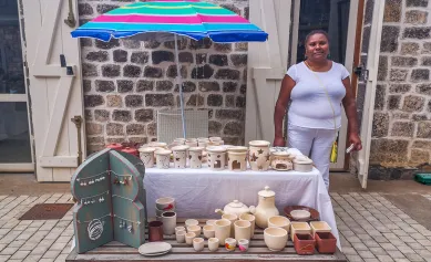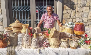Sa passion ? Les tiges de vacoas. Si vous cherchez de jolis paniers, des sacs, des pochettes en vacoas ou en tissu, vous pouvez lui faire confiance !