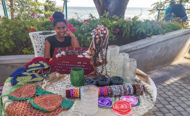 C’est un artiste de Baie du Cap qui taille les noix de coco, polit le verre et transforme même de magnifiques coquillages en boucles d’oreille. Ses bracelets tressés sont un must have à Baie du Cap !
