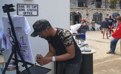 Cet artiste est spécialisé dans la personnalisation de t-shirts. Il est capable de peindre un portrait en quelques minutes. Vous pouvez aussi lui apporter des baskets blanches, il leur donnera un nouveau look !
